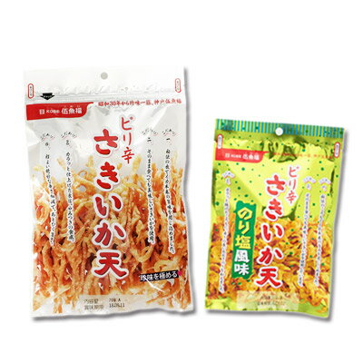 ≪内容≫ ・ピリ辛さきいか天70g ・ピリ辛さきいか天 のり塩風味30g ビールのおつまみに!当店不動の人気1位。